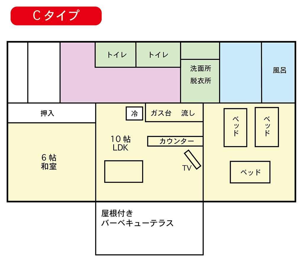 リネン代・ゴミ処理代 1〜4名様までは一泊一棟1,200円、 5名様以上は一泊1名250円 | |||