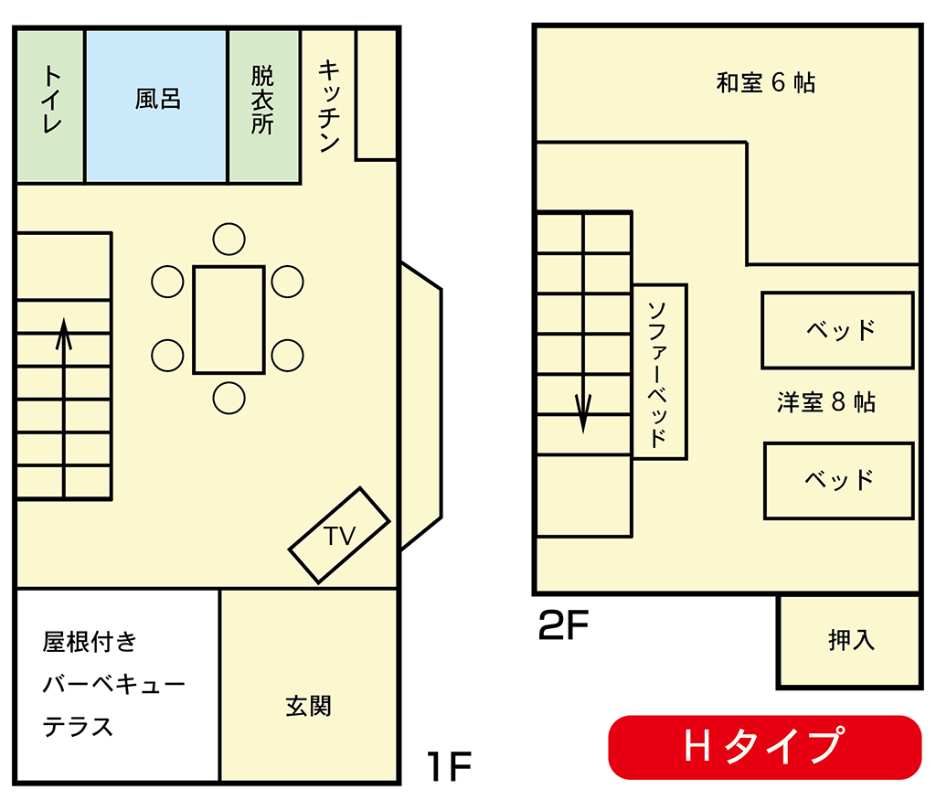 リネン代・ゴミ処理代 1〜4名様まで一泊一棟1,200円 | |||